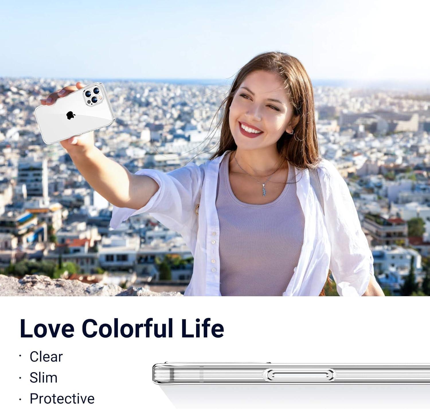 [Secure Grip & Slim Design]: The premium flexible TPU material on the clear iPhone 13 Pro Max silicone case won't only provide comfort but also a wonderful grip. Meanwhile maintaining a very light and slim profile. Easily fits in a purse or pocket for women or girls, just take it anywhere you want