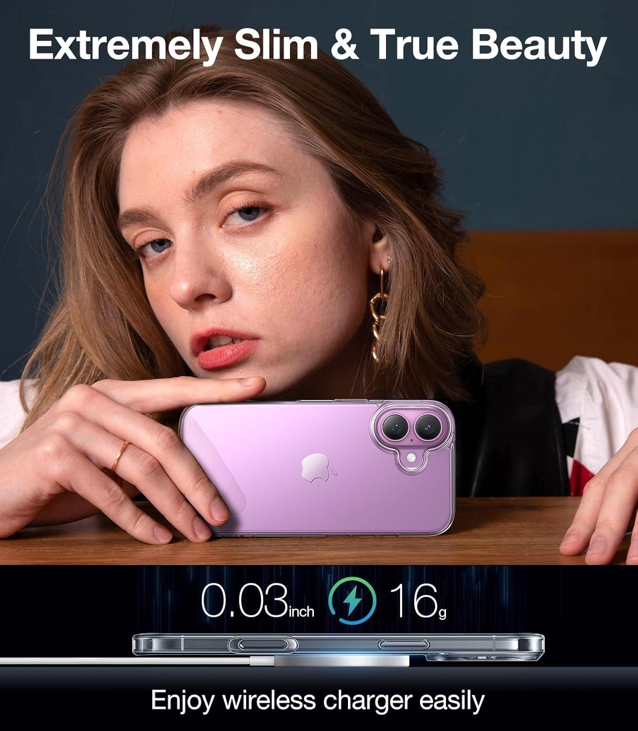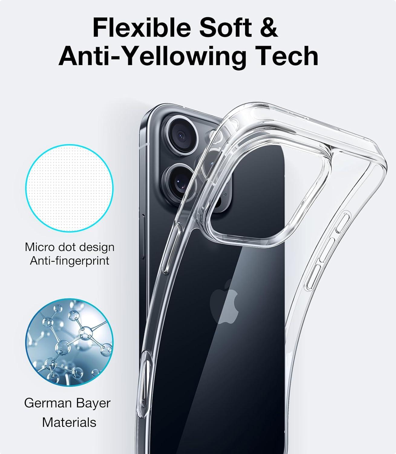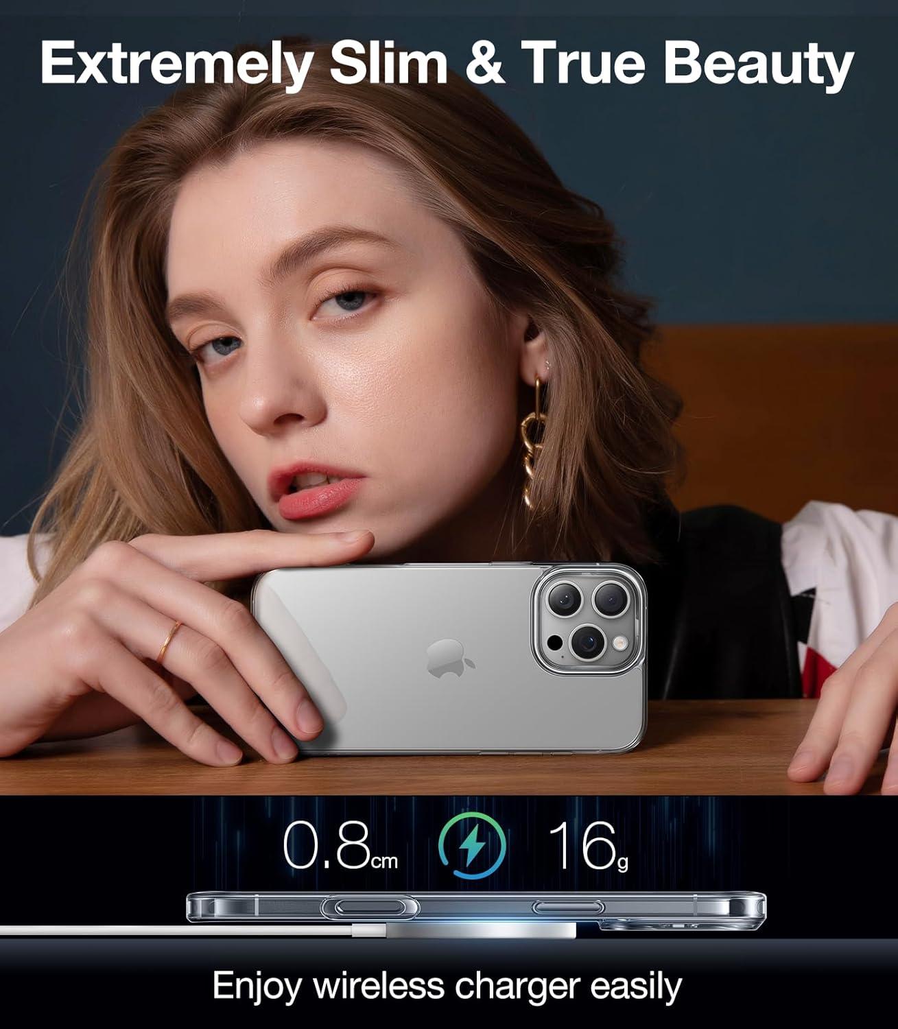 [Anti-Yellow Properties]: The ultra-slim iPhone 13 Pro Max clear case features a nano antioxidant coating and exclusive blue-molecule tech that effectively resist 99.9% of yellowing caused by ultraviolet rays and sweat, which keeps the thin iPhone 13 Pro Max phone case as clear and clean as day one