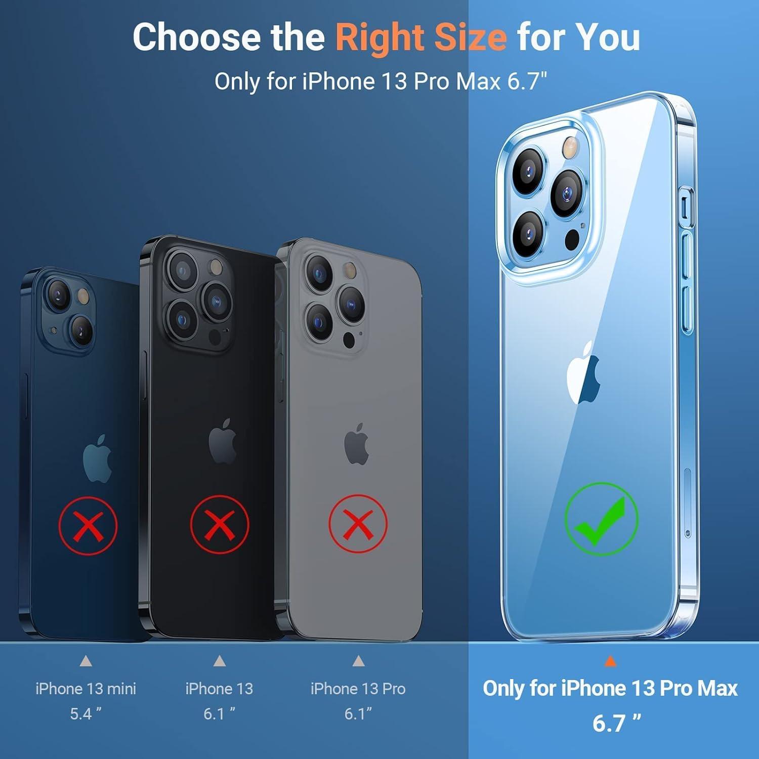 [Long-Lasting Crystal Clear]: The slim clear iPhone 13 Max Pro case is lightweight, durable, and stylish. The super clear design showcases your 13 ProMax's beautiful color to shine through. Adopting advanced microdot pattern put an end to bubbles, rainbows, and smudges appearance