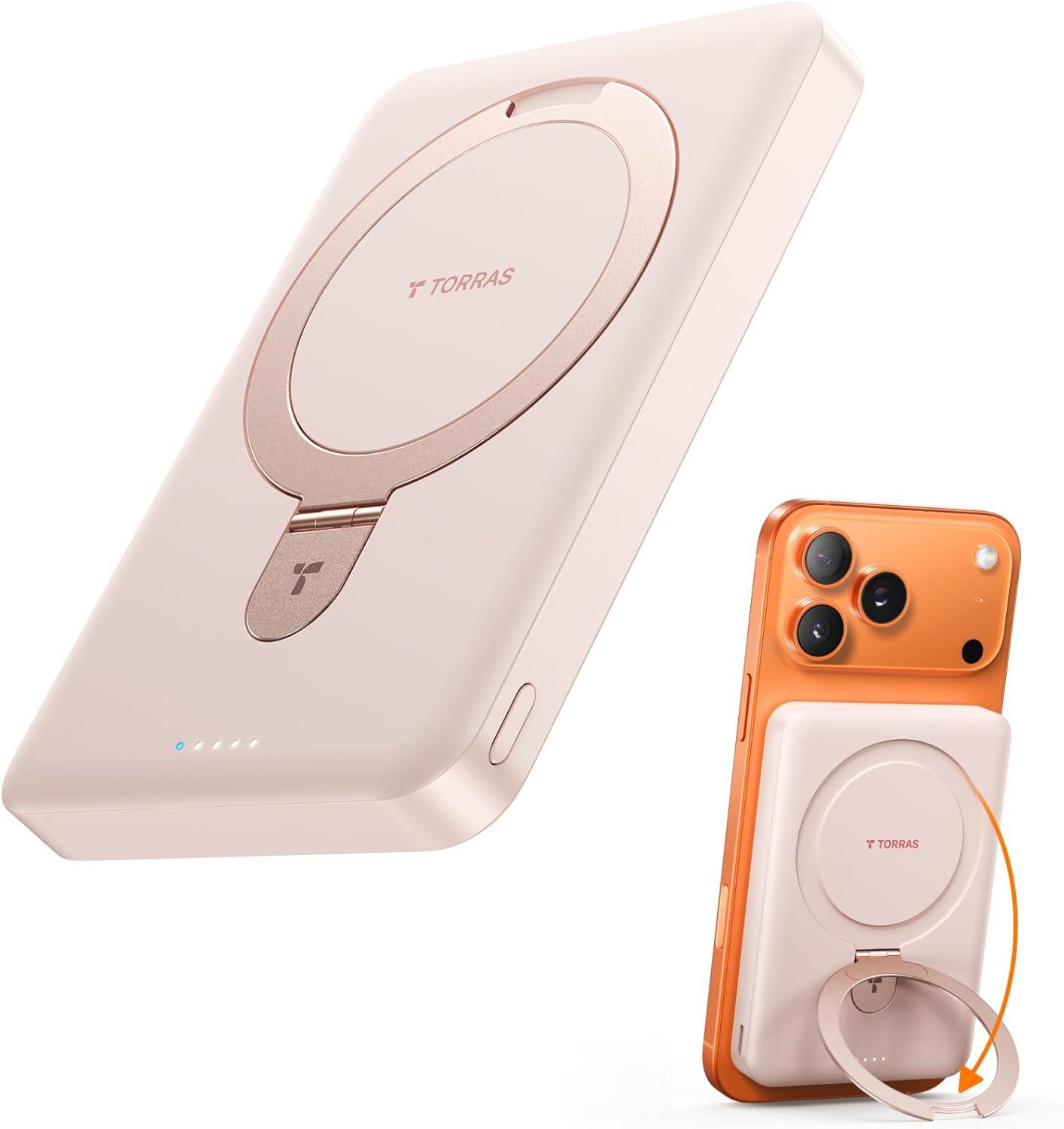 TORRAS EasyGo 0.45″ Slim Magnetic Portable Charger Power Bank for iPhone, 5000mAh 22.5W PD Fast Charging Wireless Battery Pack Compatible with Magsafe, iPhone Air,Pro,Pro Max,17,16,15,14,13,12, White(ROSE GOLD)