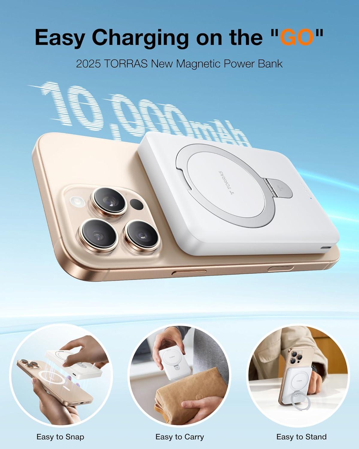 Be the first to review “TORRAS EasyGo 0.45″ Slim Magnetic Portable Charger Power Bank for iPhone, 5000mAh 22.5W PD Fast Charging Wireless Battery Pack Compatible with Magsafe, iPhone Air,Pro,Pro Max,17,16,15,14,13,12, White(WHITE)”