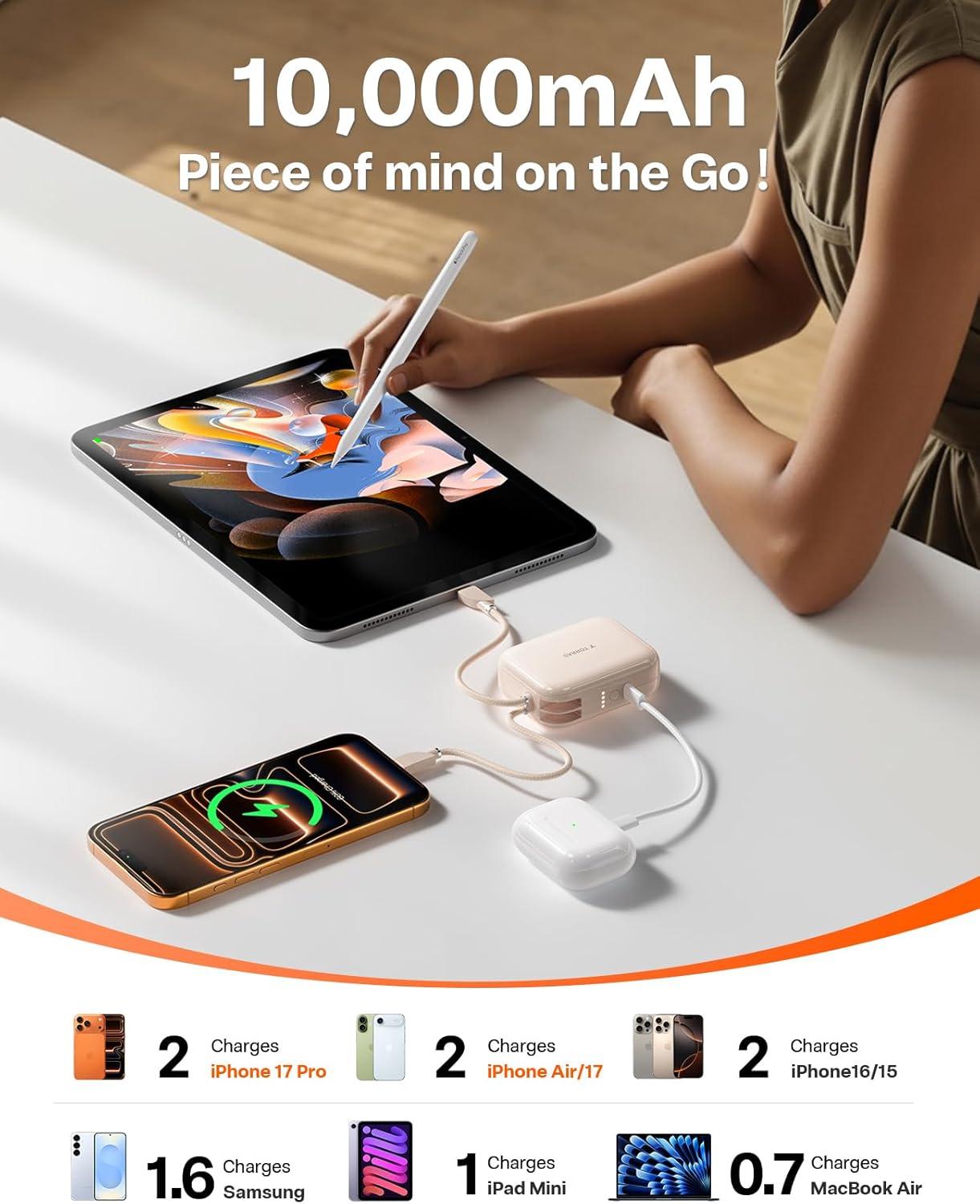 “๐ฎ๐๐๐ & ๐ฎ๐” ๐ซ๐๐๐๐๐๏ผThe integrated dual USB-C cables double as a functional lanyard. Perfect for photographers and travelers who need to charge while navigating GPS or taking photos without the “cable mess.”