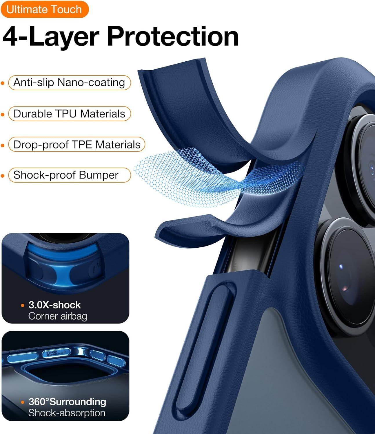 Automotive-Grade Material: Crafted with high-toughness TPU+TPE automotive-grade material, this protective phone case for iPhone 17 Pro features a 2.5mm raised camera bezel and reinforced screen edges to shield the newest lenses. Built for lasting durability, it keeps your phone safe whether it’s dropped or tossed on a desk—so your screen and lenses stay crystal clear.