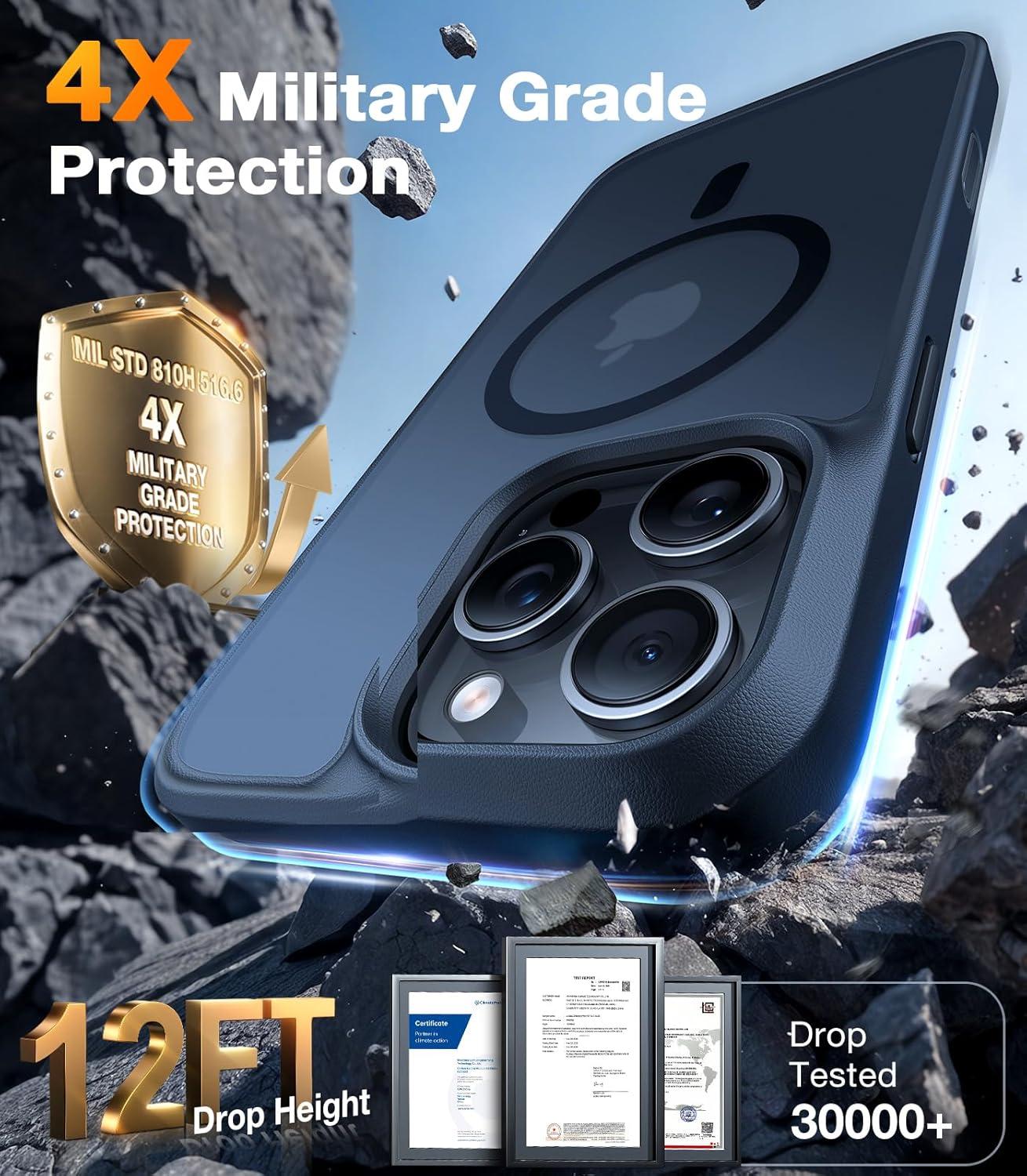 [4X Military-Grade Protection — Lab-Tested for Stress-Free] Engineered for fearlessness, the deep blue case for iPhone 17 Pro Max features TORRAS exclusive Triple-Runway Air Cushioning with visible 360° SHOCKMAT impact absorption tech. Precision-raised bezels (1.5mm screen, 2.5mm camera) shield against concrete strikes and tumbles — all lab-tested to withstand over 30,000 drops from every angle. This premium protection empowers you to live boldly — with zero stress.