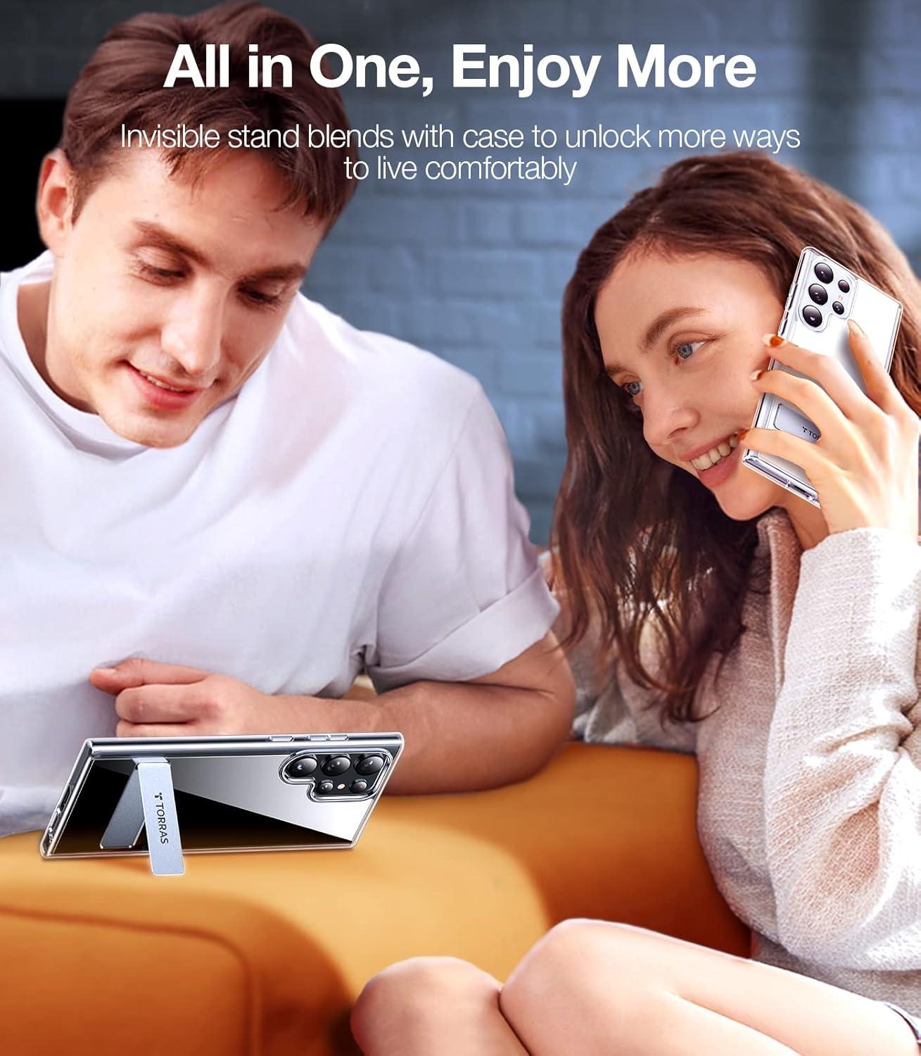 0 RAISED HIDDEN KICKSTAND: The clear S23 Ultra case is specially designed for customers who appreciate a convenient lifestyle and minimalist aesthetics. Different from normal bumpy kickstand cases, the 0-raised kickstand folds up completely flush with the back, making the Galaxy S23 Ultra case slim, sleek, and comfortable to the touch. Say goodbye to the embarrassment brought by phone bulges and pocket frustrations.