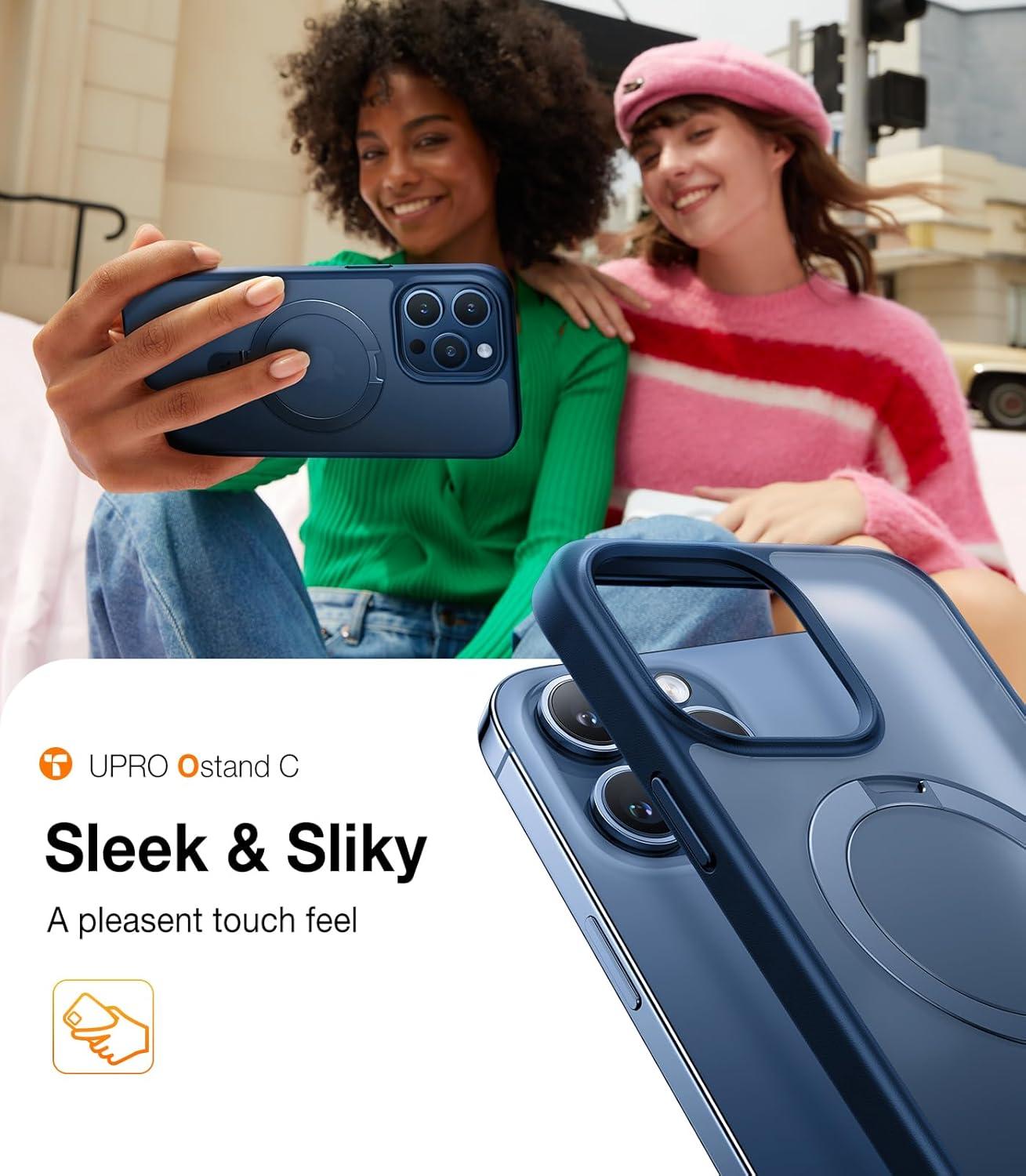TORRAS Magnetic for iPhone 16 Case with Stand, Built-in Stand Compatible with MagSafe, 3X Military-Grade Protection, Translucent Slim Phone Case for iPhone 16 6.1”, Matte Blue(Navy Blue)