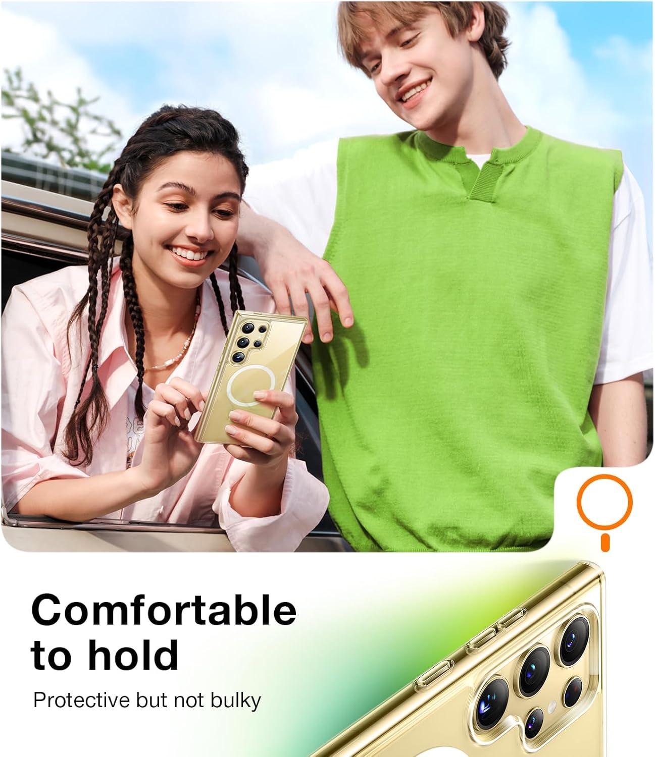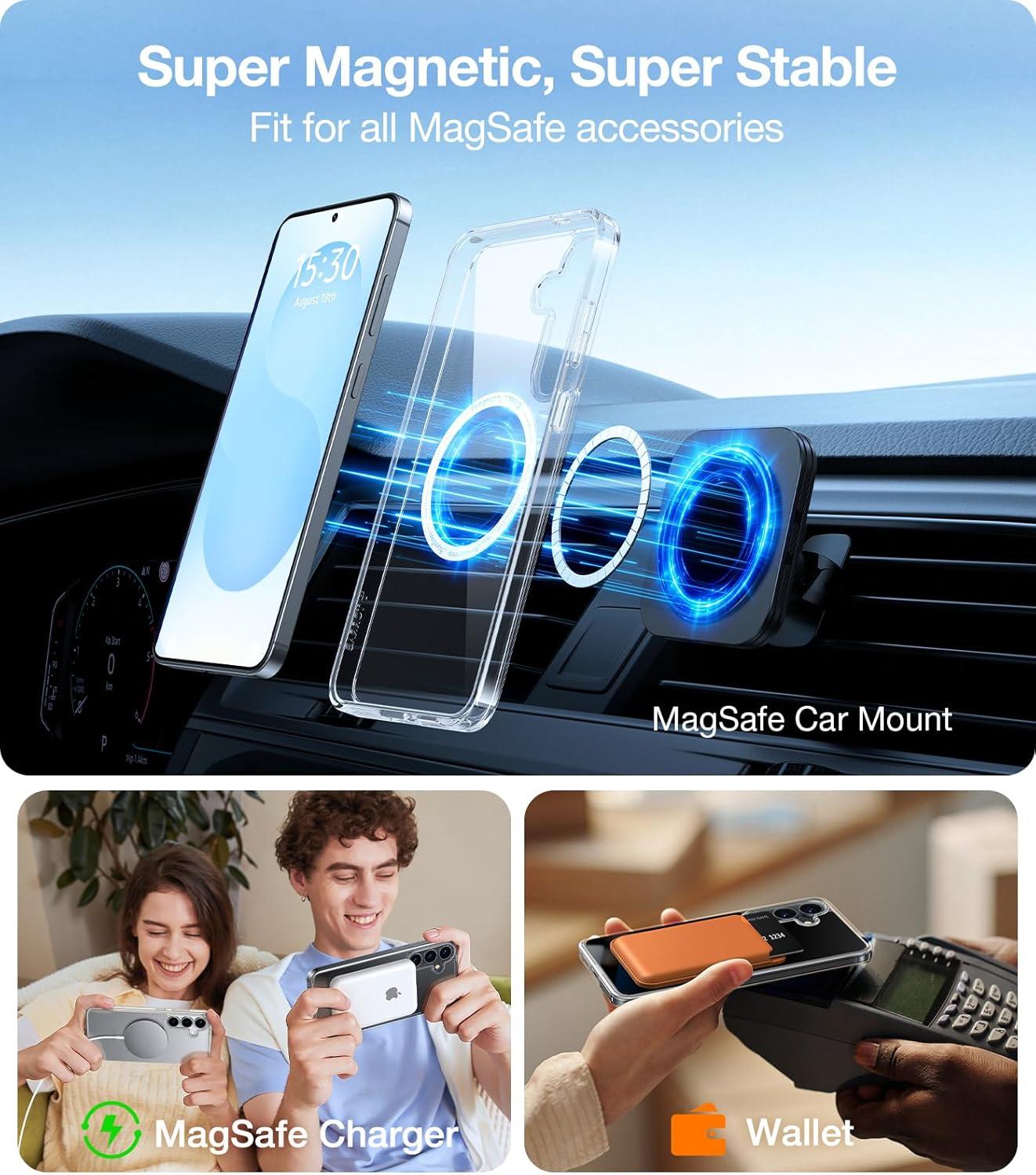 [Compatible with MagSafe Accessories] Only for galaxy S23 case, with a built-in magnetic ring that aligns perfectly with MagSafe chargers, making wireless charging safer than ever. Besides, compatible with the official-size MagSafe accessories like Apple accessories (leather wallets, wireless charging stand, car mount and so on). NOT compatible with wireless charger/charging pad for Tesla.