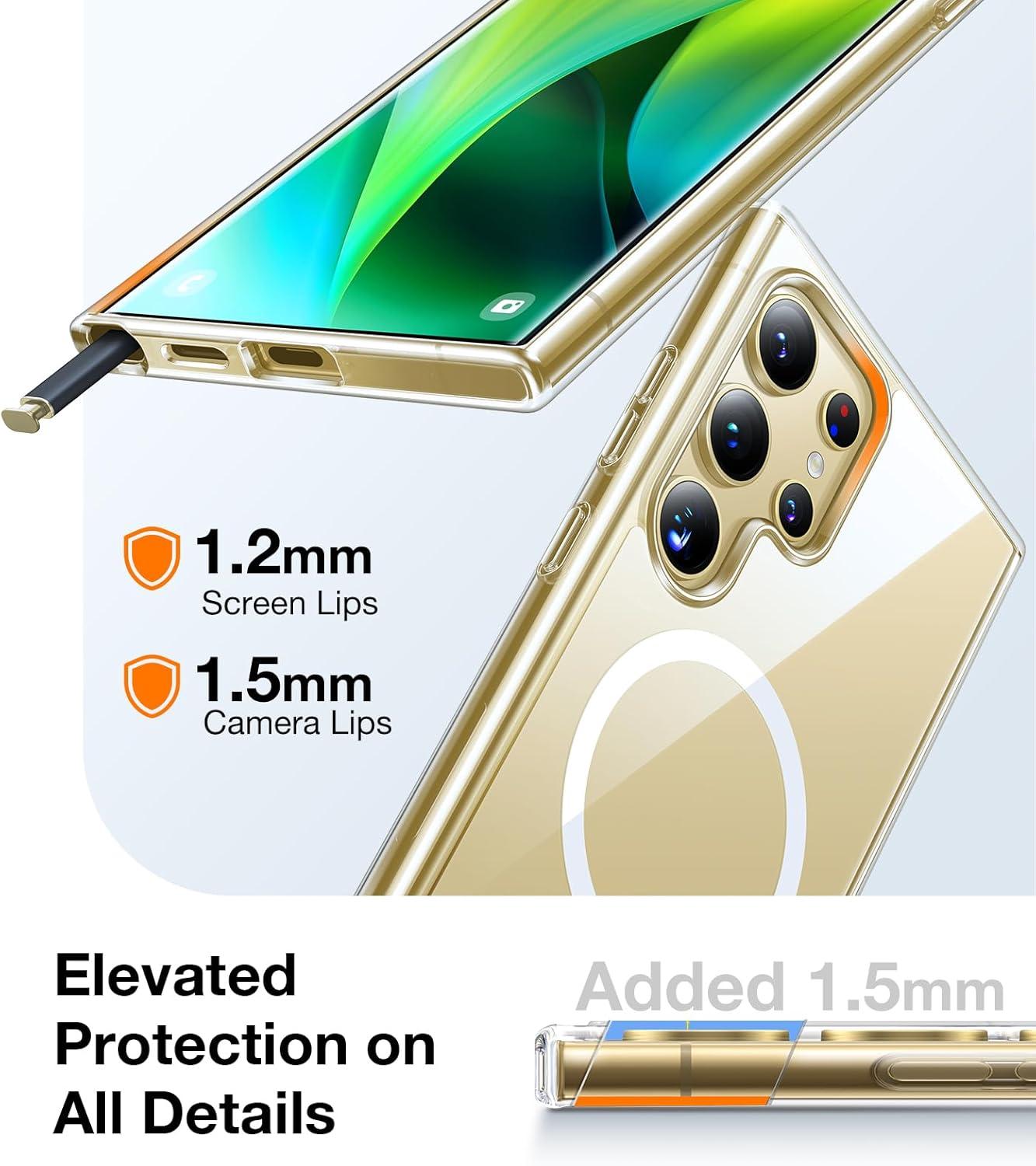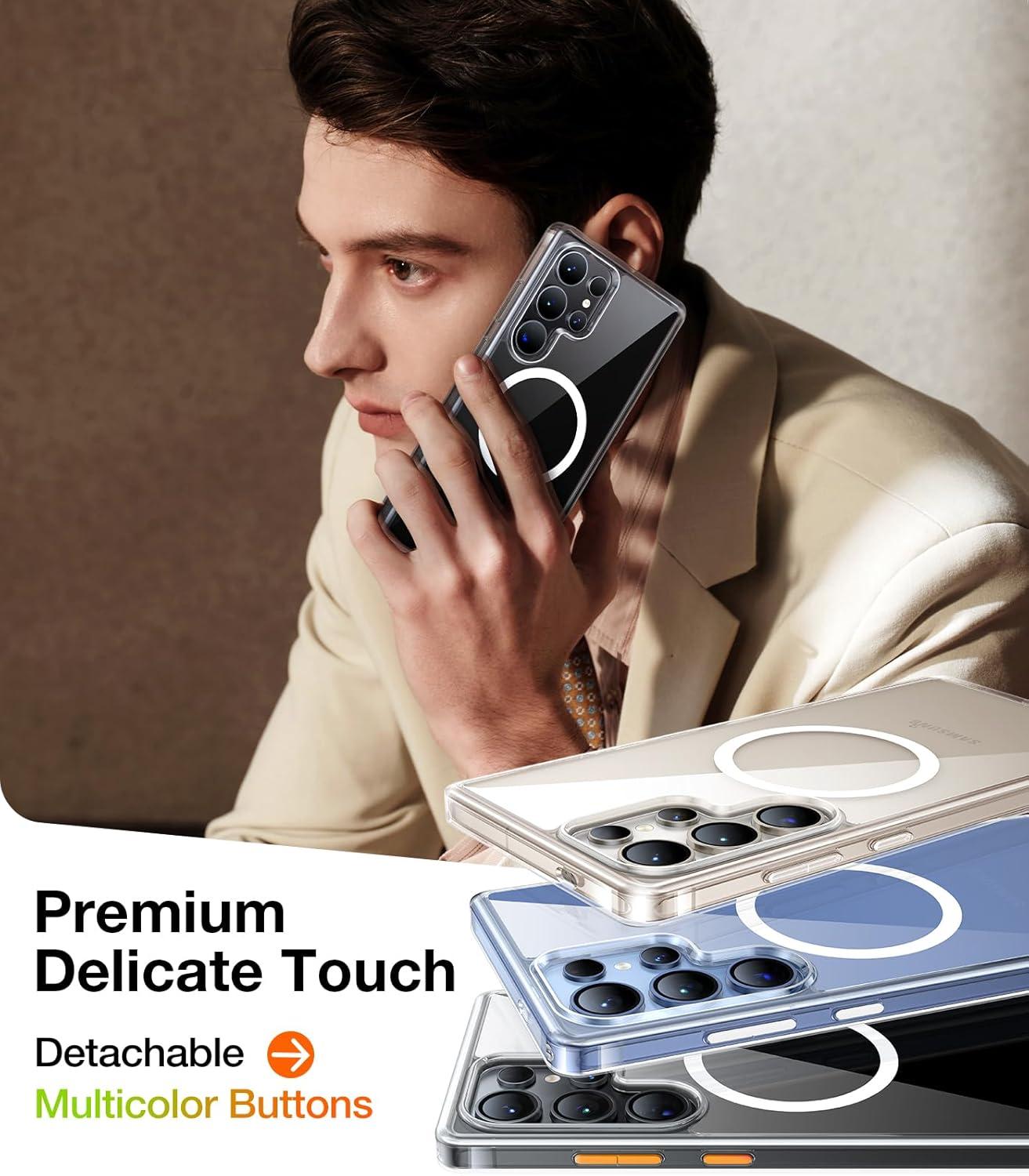 [Slim Profile & Premium Touch Feel] Our magnetic slim S23 case 5g is made with our patented Airbag Tech and ergonomic design to feature minimal bulkiness for max proection. Besides, our ultra thin s23 case with a 3D Nappa delicately textured edge design brings a comfortable touching experience. A matte back and flexible rubber edges provide excellent grip. Once you hold it in your hand, you can feel the surface as sleek as baby skin.