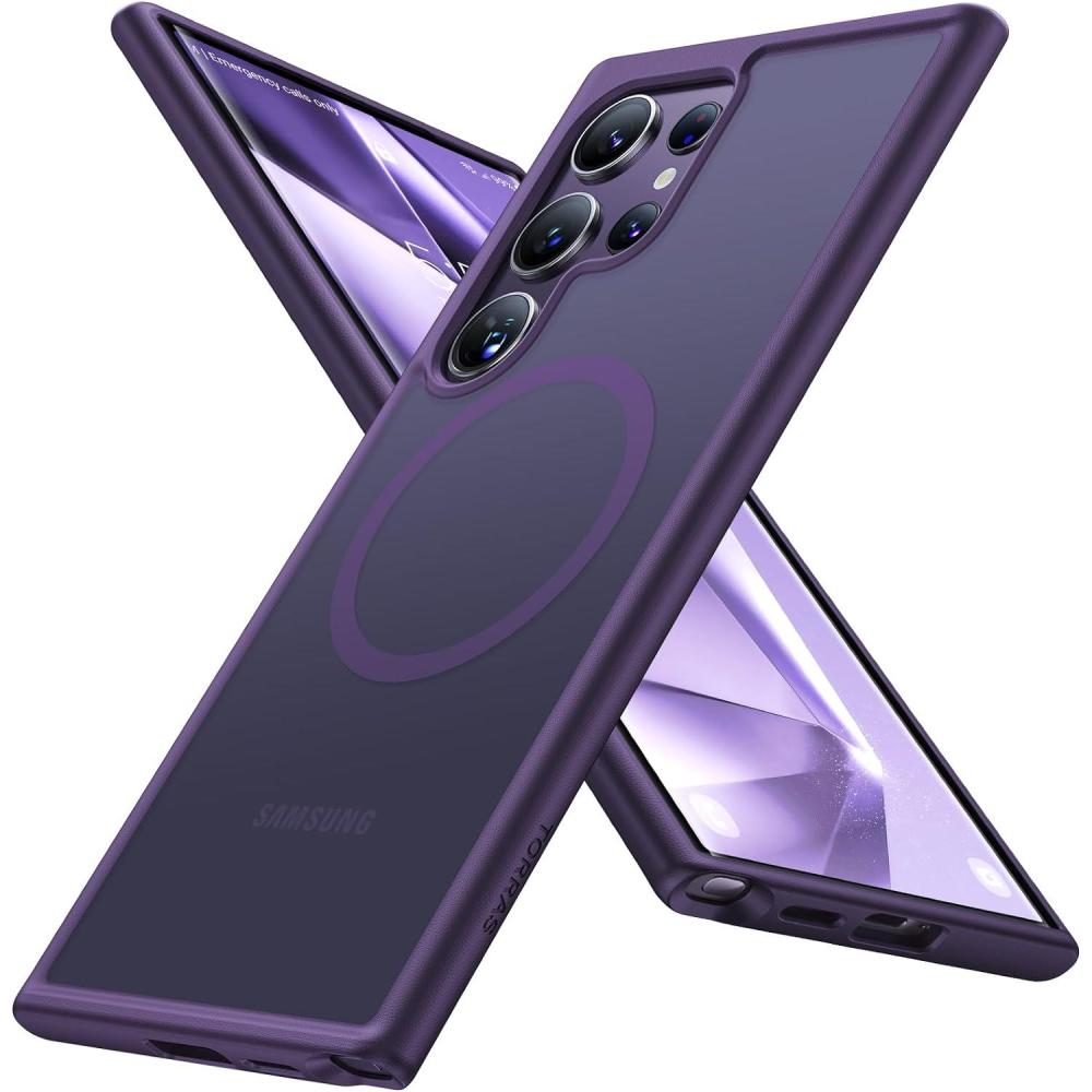 TORRAS Magnetic Guardian Only for Samsung Galaxy S23 Case 6.1″, [Military Grade Drop Tested] [Compatible with MagSafe] Semi-Clear Hard Back & Soft Edge Slim PC & TPU S23 Case 6.1 Inch, Black(Purple)