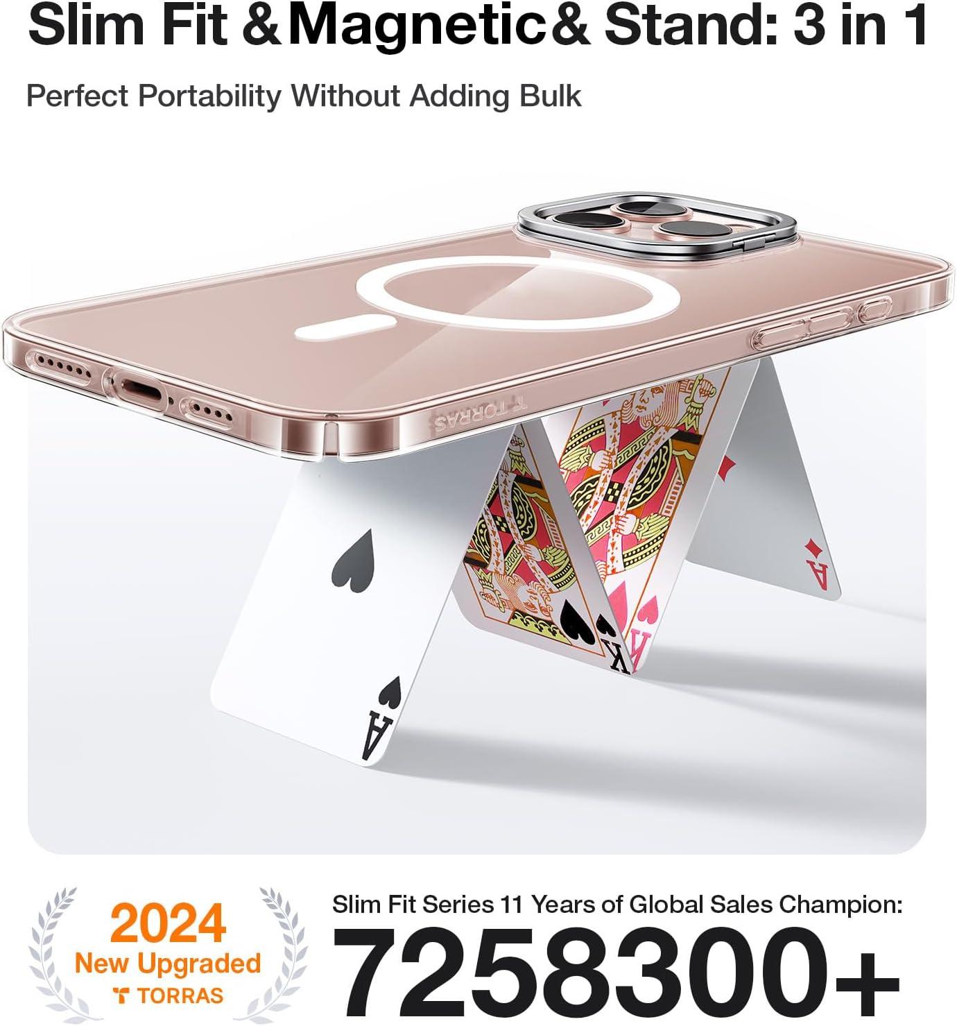 TORRAS Magnetic Slim Fit for iPhone 16 Pro Case with Stand, Compatible with MagSafe, Built-in Stash Stand, Ultra Thin 16 Pro Case, Lightweight Anti-Scratch Matte Hard Phone Case 6.3 inch, Black(Clear)