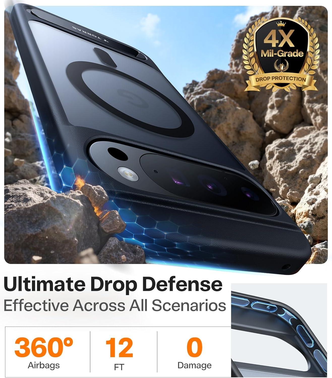 Military-Grade Drop Protection: This shockproof case for Pixel 10 Pro XL case is reinforced with TORRAS X-Shock corners and impact-absorbing TPU. The raised bezels (1.0mm for the screen, 1.5mm for the camera) offer all-around protection. It's a military-grade phone case designed for everyday durability