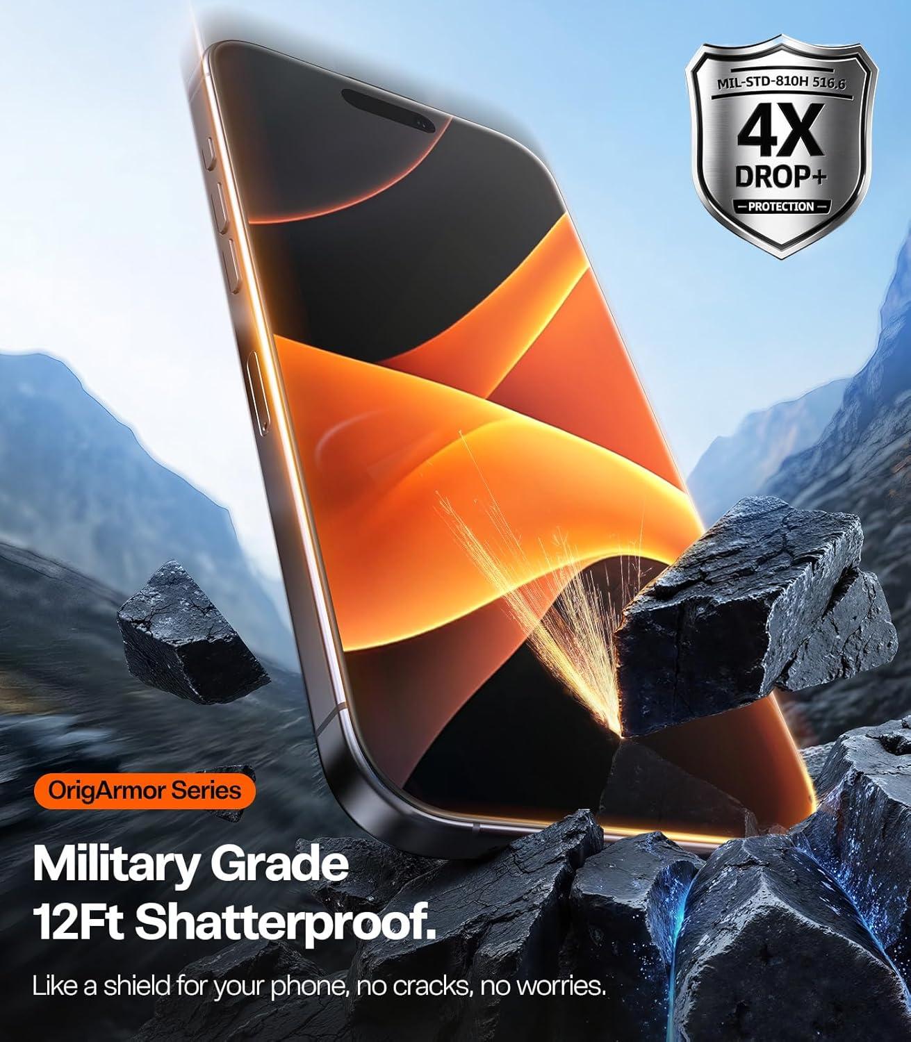【Military Grade 9H+ Aerospace Glass, Ultimate Protection.】The world’s first aerospace-grade glass screen protector (same as spacecraft material) offers unmatched scratch resistance and revolutionary 12-foot shatterproof performance—meeting the industry’s highest standards. Backed by 30+ patented technologies (ion-exchange strengthening, silicone buffer layer), it protects your phone from drops and impacts.