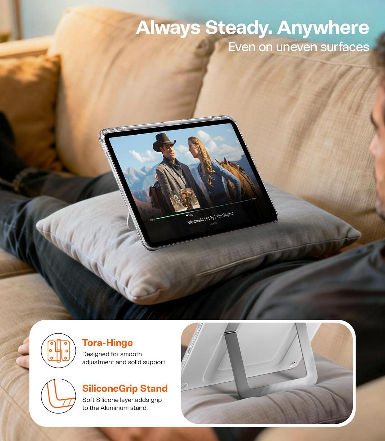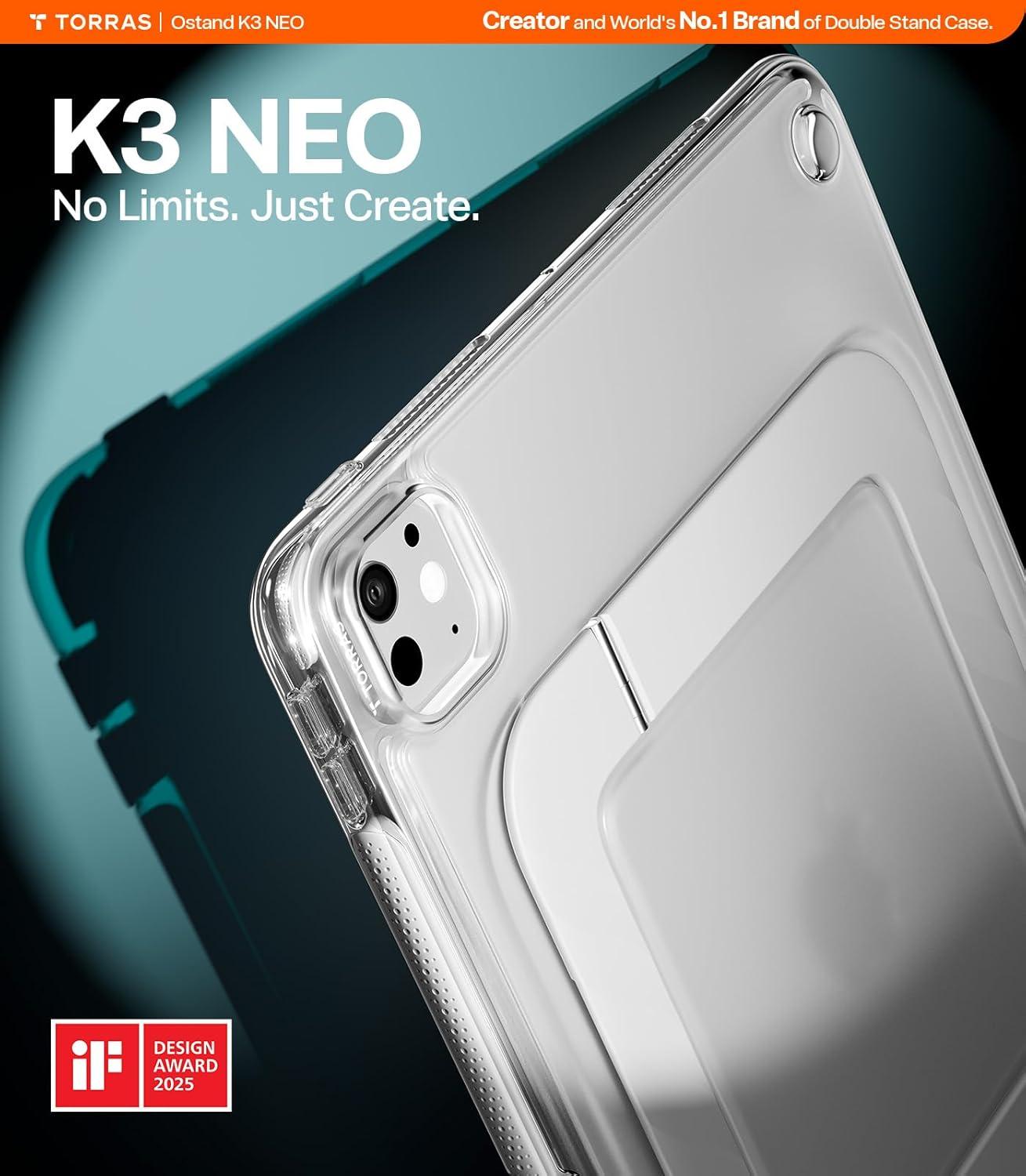 【TORRAS Ostand K3 Neo | Dual-Stand iPad Case】Built on advanced dual-stand engineering, the TORRAS iPad mini case delivers smooth, laptop-like continuous angle adjustment, freeing you from fixed viewing positions. That means you can easily dial in your most comfortable angle and keep distracting glare out of the way. And for everyday use, you can switch freely between the long and short stand to match different needs, turning your iPad into a high-efficiency productivity companion.