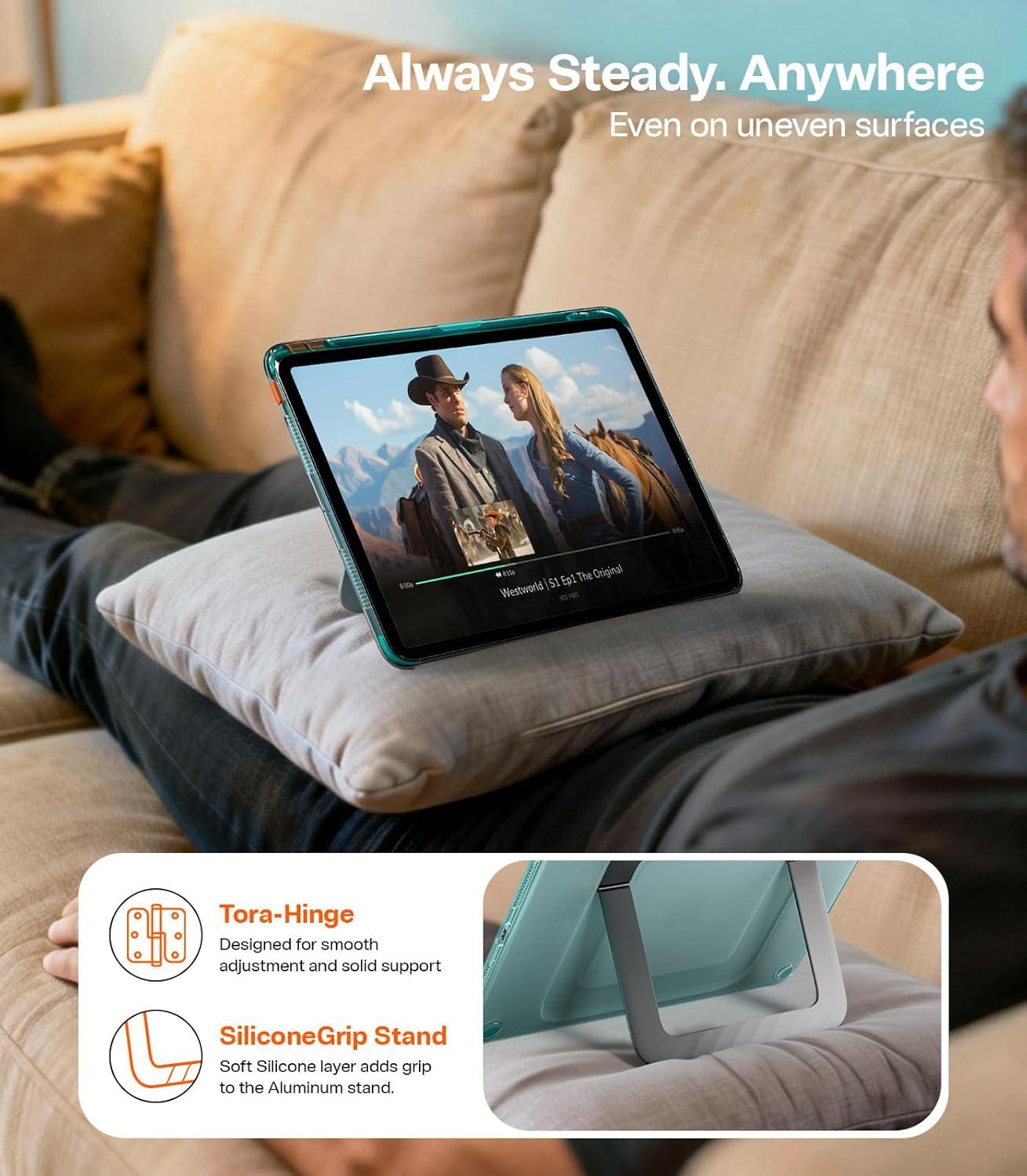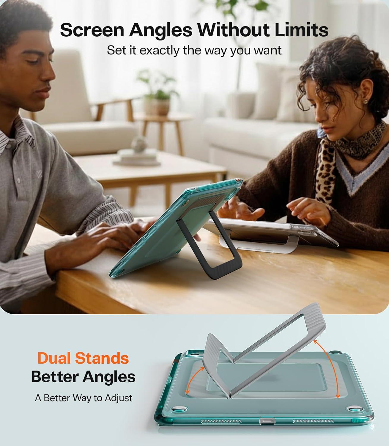【TORRAS Ostand K3 Neo | Dual-Stand iPad Case】Built on advanced dual-stand engineering, the TORRAS iPad mini case delivers smooth, laptop-like continuous angle adjustment, freeing you from fixed viewing positions. That means you can easily dial in your most comfortable angle and keep distracting glare out of the way. And for everyday use, you can switch freely between the long and short stand to match different needs, turning your iPad into a high-efficiency productivity companion.