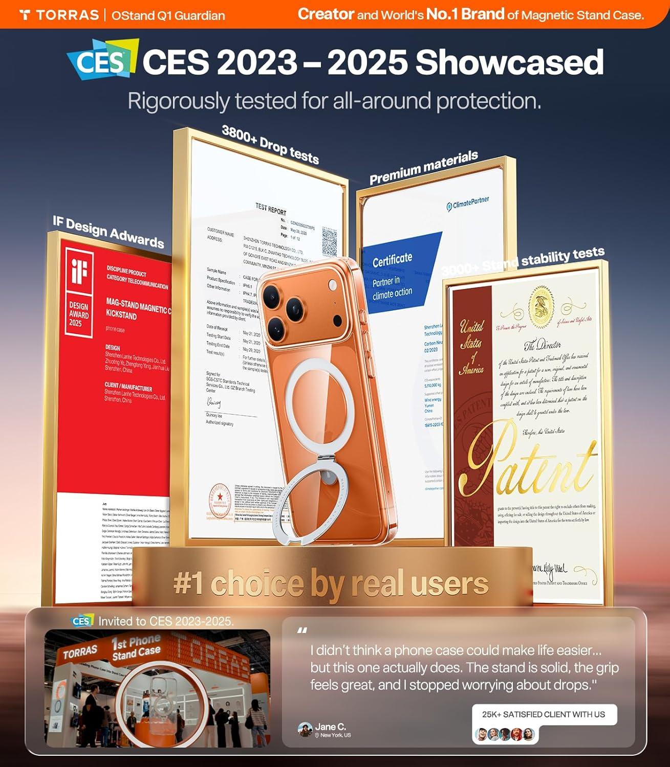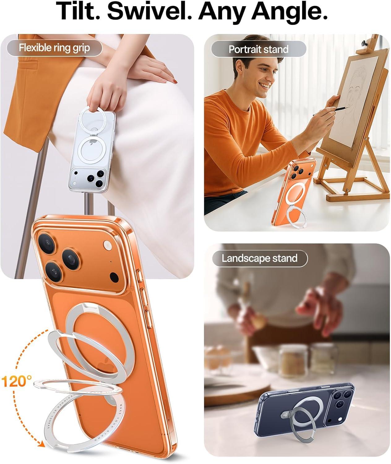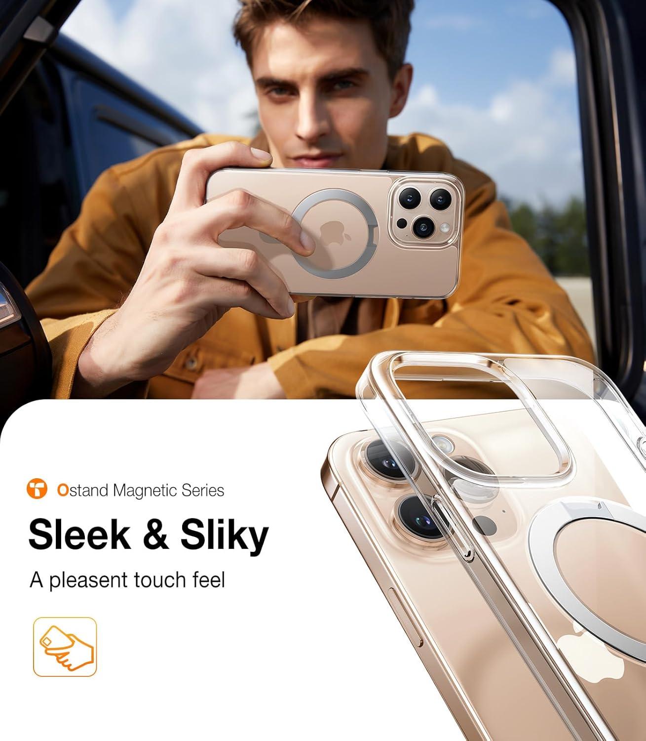 Revolutionary Ostand Design: Seamlessly blending magnetic technology with an integrated stand. Effortlessly hold, support, secure, and charge your phone. Crafted with aircraft-grade aluminum stand is durable and perfect for selfies, vlogging, and family gatherings. Adjustable angle design ensures the best viewing experience in both portrait and landscape modes