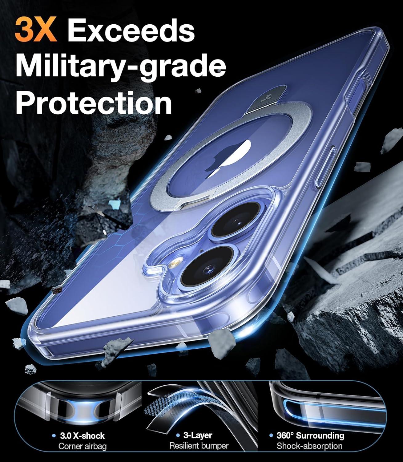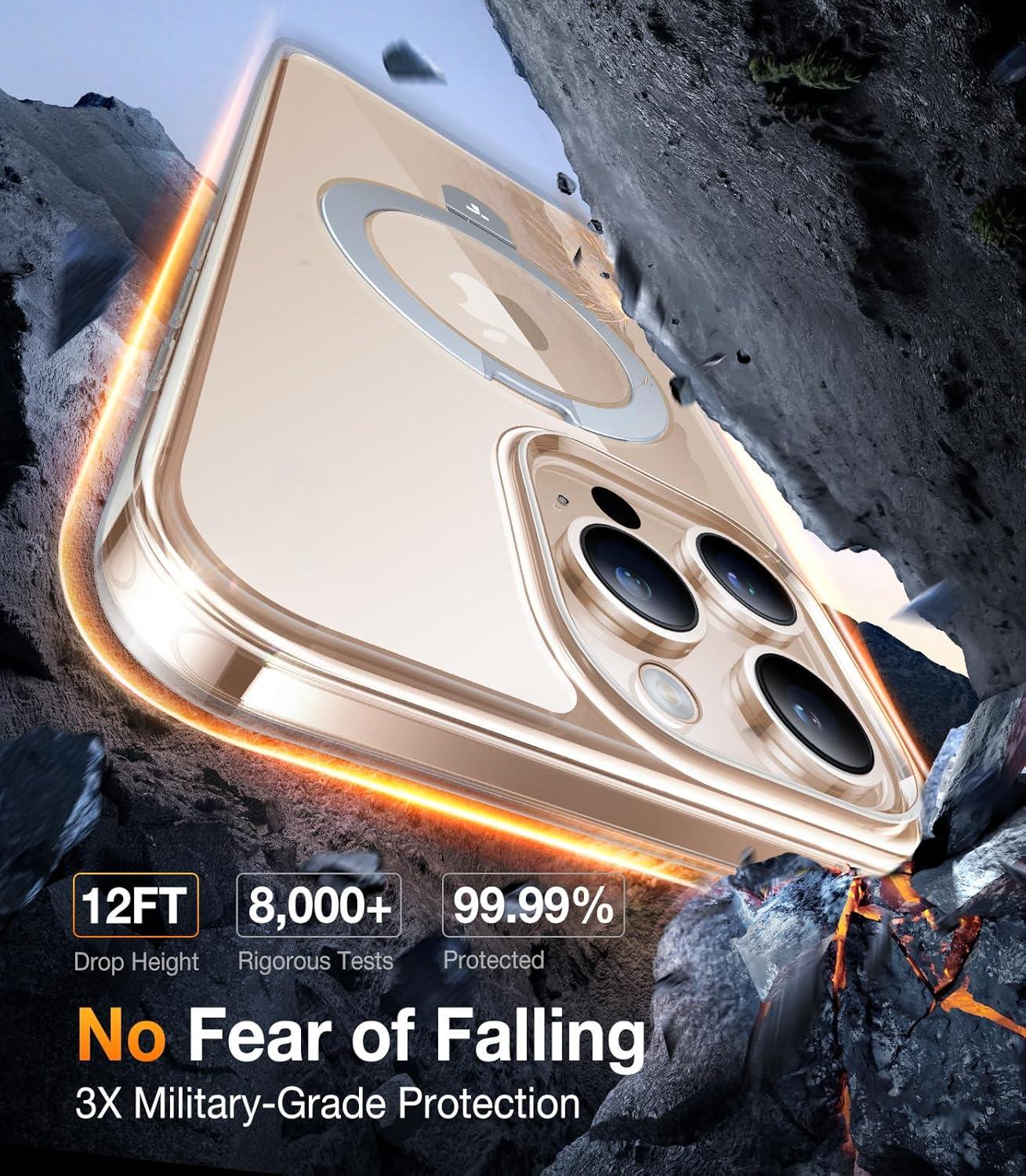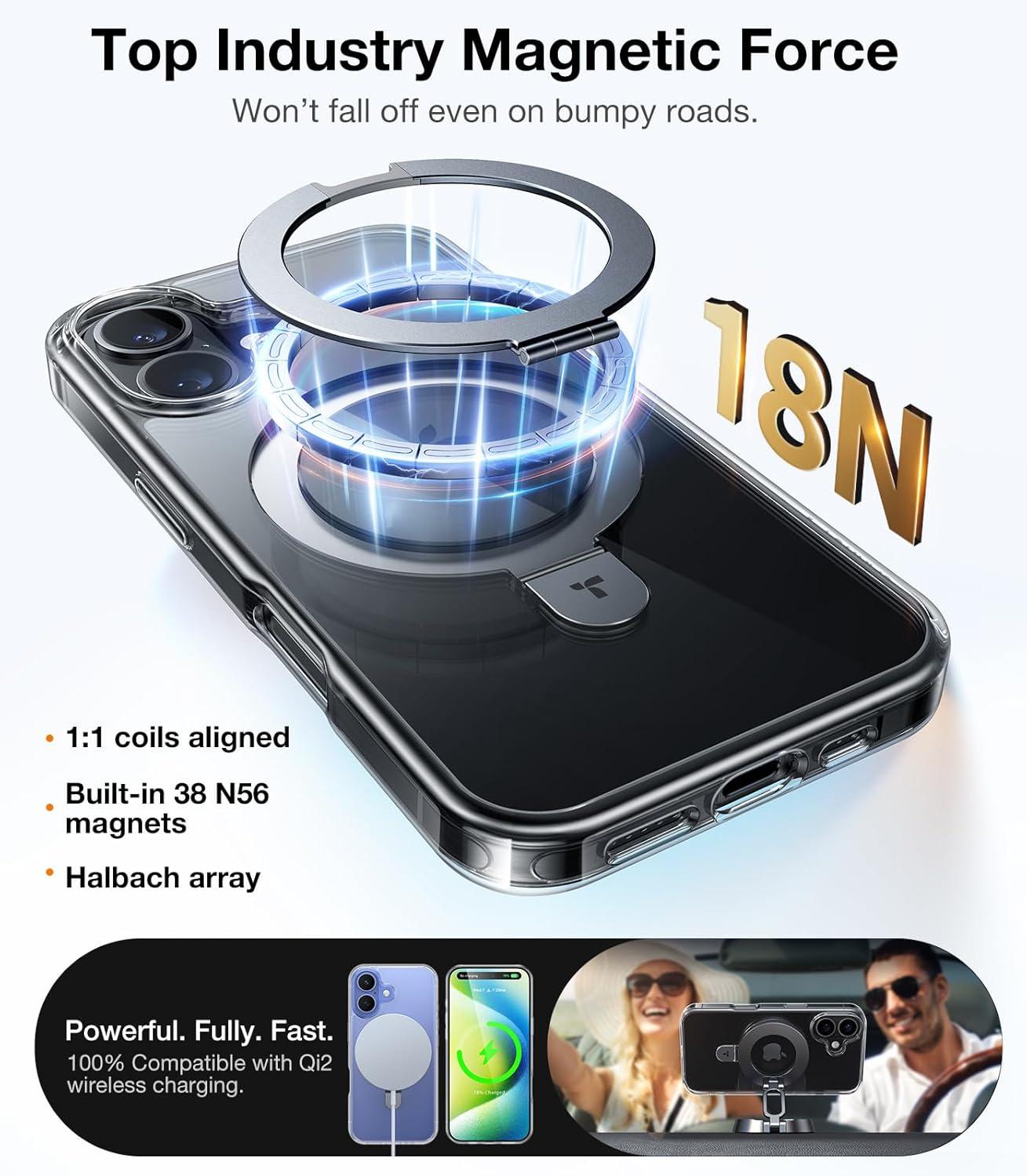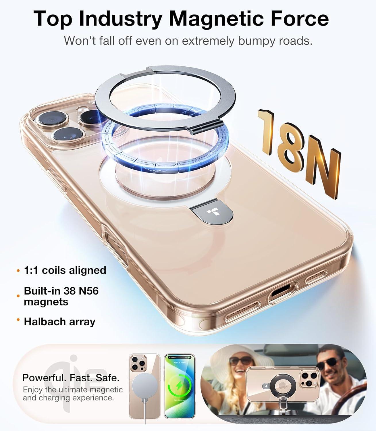 Extraordinary Magnetic Power: Experience unparalleled magnetic strength with the advanced Halbach magnetic structure and external magnets. Ensure your phone stays securely in place, no matter the environment. The magnetic iphone 17 pro max case with stand keeps your device tightly connected—no more worries about accidental detachment