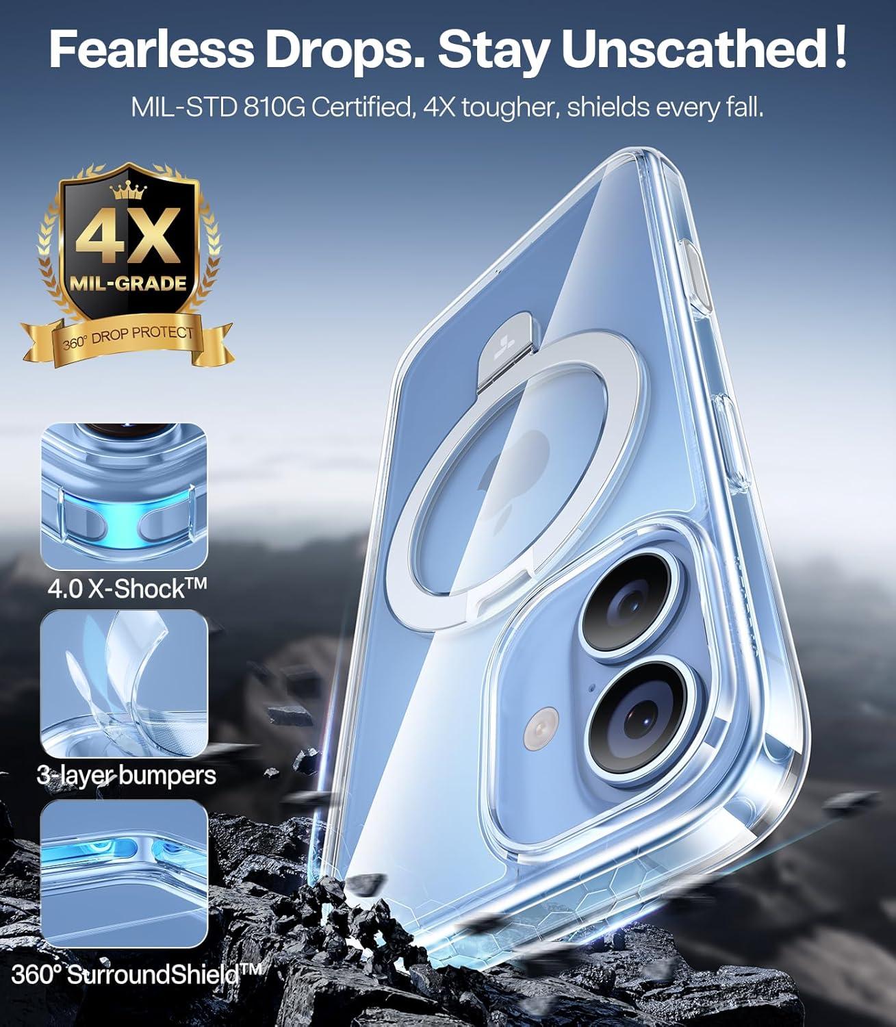Unmatched Durability: Crafted from reinforced polycarbonate and automotive-grade TPE materials, this case offers superior drop resistance. Equipped with 360° shock-absorbing airbags and X-Shock 4.0 corner cushioning, it delivers 3X military-grade protection. The 9H camera control button ensures your phone stays safe from damage. No more costly repair bills