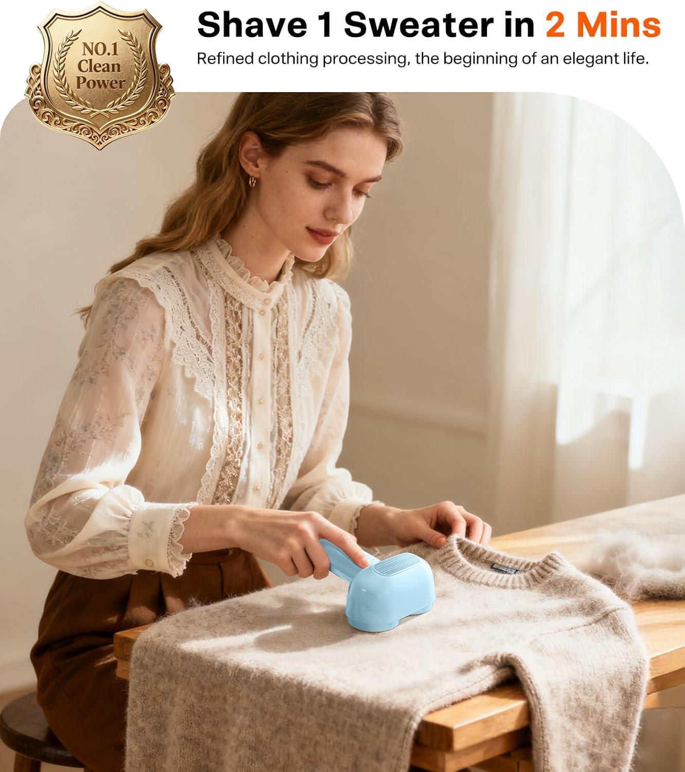 🧣 [Triple Safety Protections] Protect your luxury clothing with triple safety protection mode. Once you open the net cover and lint container, the lint shaver rechargeable will automatically cut off the power to ensure the fabric's good condition and your safety. The electric lint remover for clothes maintains a safe distance between fabric and blades with the suck-shave technology, preventing clothing damage. Revitalize the fabrics in your cozy home with a brand new freshness.