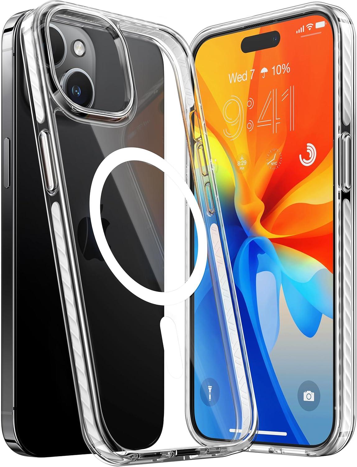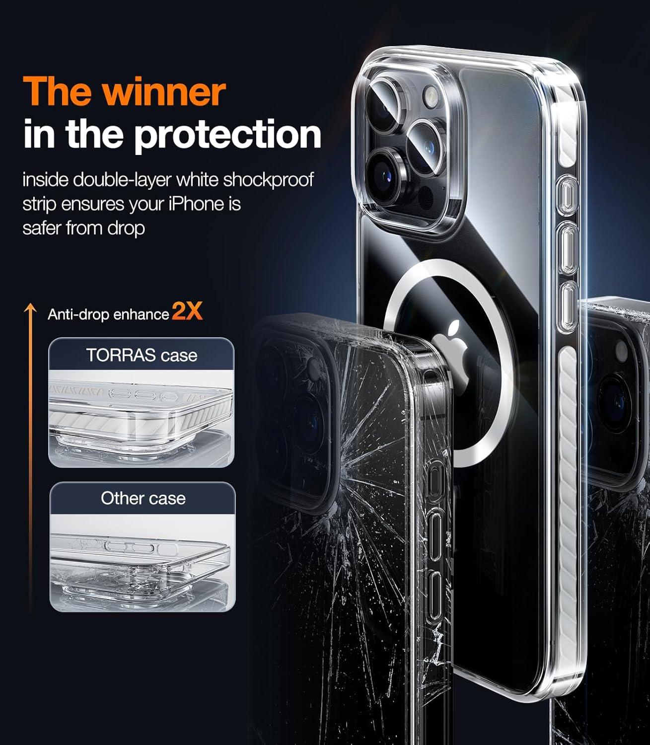 TORRAS Shockproof for iPhone 15 Pro Max Case Clear [Military-Grade Drop][Compatible with MagSafe][Yellowing Resistant] Hard PC Back, White Bumper Phone Case iPhone 15 Pro Max, Clear(1-Clear)