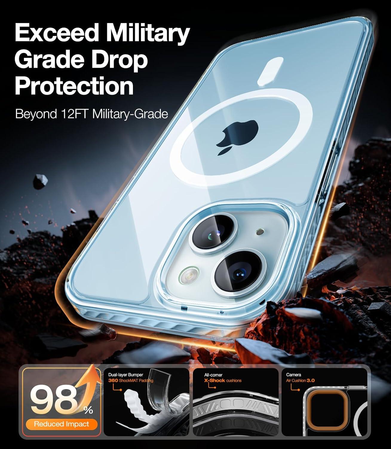 【Magnetic Grip, Secure Fit】This case iPhone 15 pro max with a magnetic strength of 40% stronger integrates seamlessly with MagSafe and Qi-certified chargers for swift and effortless charging. It is also compatible with MagSafe car mounts, wallets, and battery packs
