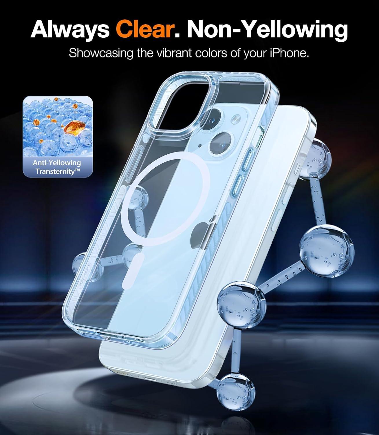 【Anti-Yellowing, Always Clear】 The clear iPhone 15 ProMax case features a crystal-clear back. Thanks to TORRAS' Transternity anti-yellowing technology, it effectively resists yellowing caused by 99.9% of UV rays, fingerprints, sweat, and more. This case will remain crystal clear for an extended period, preserving your phone's vivid colors, allowing you to enjoy your phone's original hue with ease