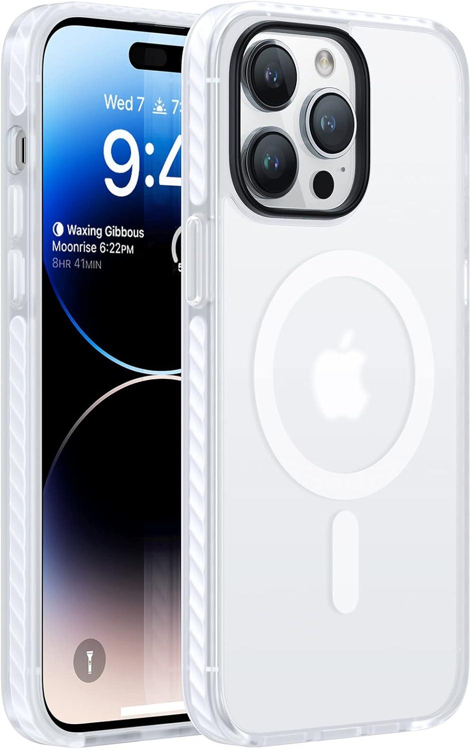 TORRAS Shockproof for iPhone 15 Pro Max Case Clear [Military-Grade Drop][Compatible with MagSafe][Yellowing Resistant] Hard PC Back, White Bumper Phone Case iPhone 15 Pro Max, Clear(91-Matte White)