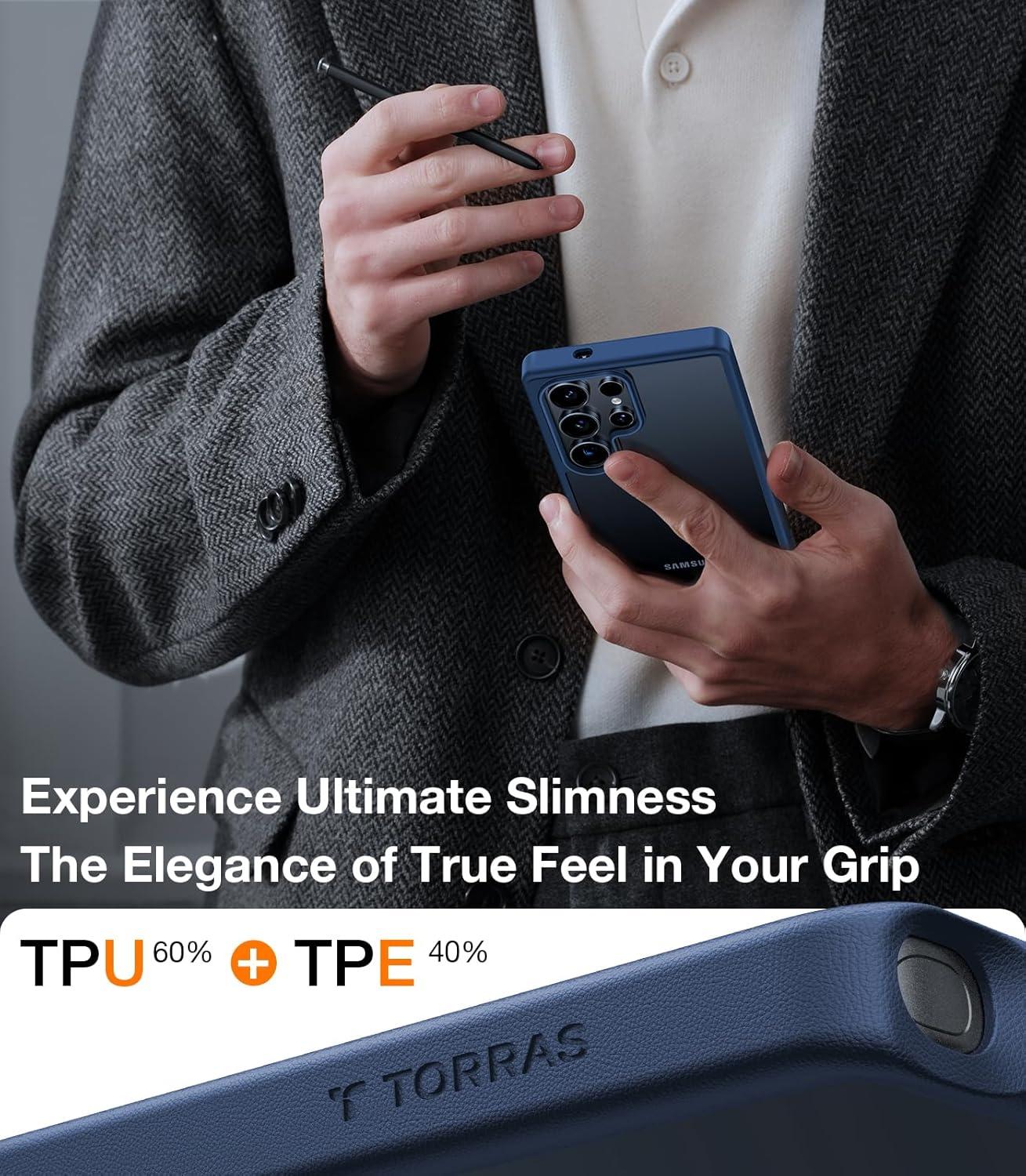 [Ultra-Protection, Beyond Military-Grade Level] TORRAS X-Shock air cushioning structure and highly resilient TPU material offer beyond military-grade protection to ensure your phone gets covered on all sides. The delicate screen and camera lens are protected by 1.7mm and 1.2mm raised bezels, effectively preventing scratches or accidental damage. Rigorously tested over 4000 times, this S25 Ultra phone case bids farewell to case cracks and camera scratches, giving you total peace of mind even during shocks and drops.