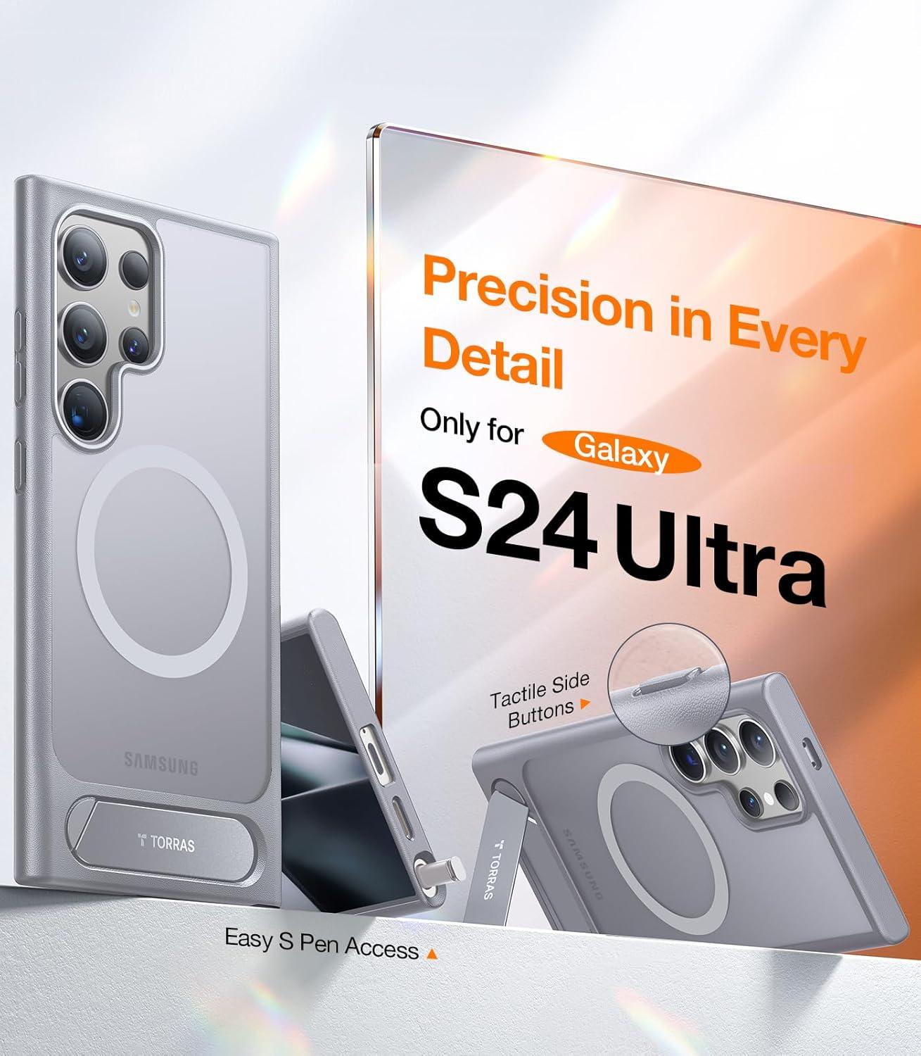 TORRAS Magnetic Case Leader: Since 2022, We've been creating great magnetic cases for Samsung users. Our case for Samsung Galaxy S25 Ultra case uses N52-Grade Neodymium magnets with exclusive MegaMag-Boosted Magnetism technology to make the magnetic attraction extremely powerful. A slim, flat plate in stand form offers a hands-free and multi-angle tilting experience, while its built-in magnetic ensures uninterrupted wireless charging