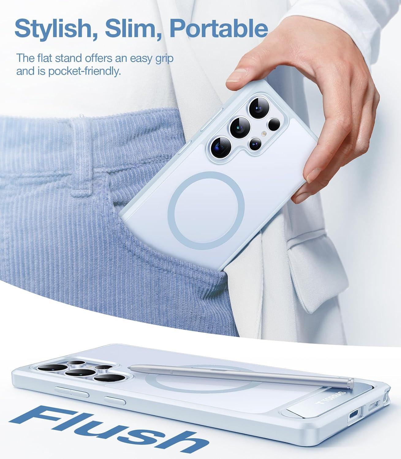 TORRAS Magnetic Case Leader: Since 2022, We've been creating great magnetic cases for Samsung users. Our case for Samsung Galaxy S25 Ultra case uses N52-Grade Neodymium magnets with exclusive MegaMag-Boosted Magnetism technology to make the magnetic attraction extremely powerful. A slim, flat plate in stand form offers a hands-free and multi-angle tilting experience, while its built-in magnetic ensures uninterrupted wireless charging
