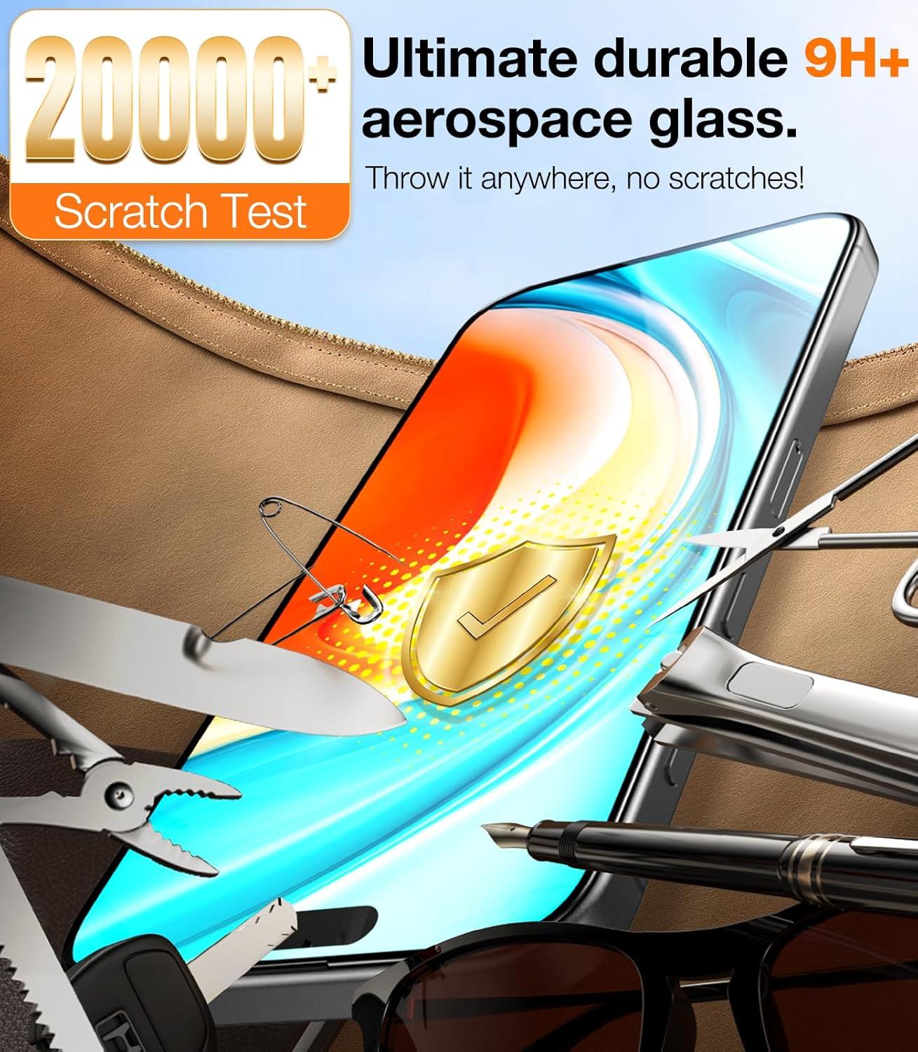 【9H+ Hardness, Unmatched Durability】 TORRAS Screen Protector for iPhone 16 Pro Max is MIL-STD-810G certified, enduring 10,000 abrasion cycles, over 1,000 scratches from a Swiss Army knife, and impacts exceeding 220 lbs. As the top performer among screen protectors, it’s built to last! Feel confident tossing your phone in your bag with sharp objects like keys or knives. GlassGo X, the world’s first screen protector made from aerospace-grade glass—the same material used in spacecraft—offers unparalleled scratch resistance, with over 138,860,000 packs sold globally.