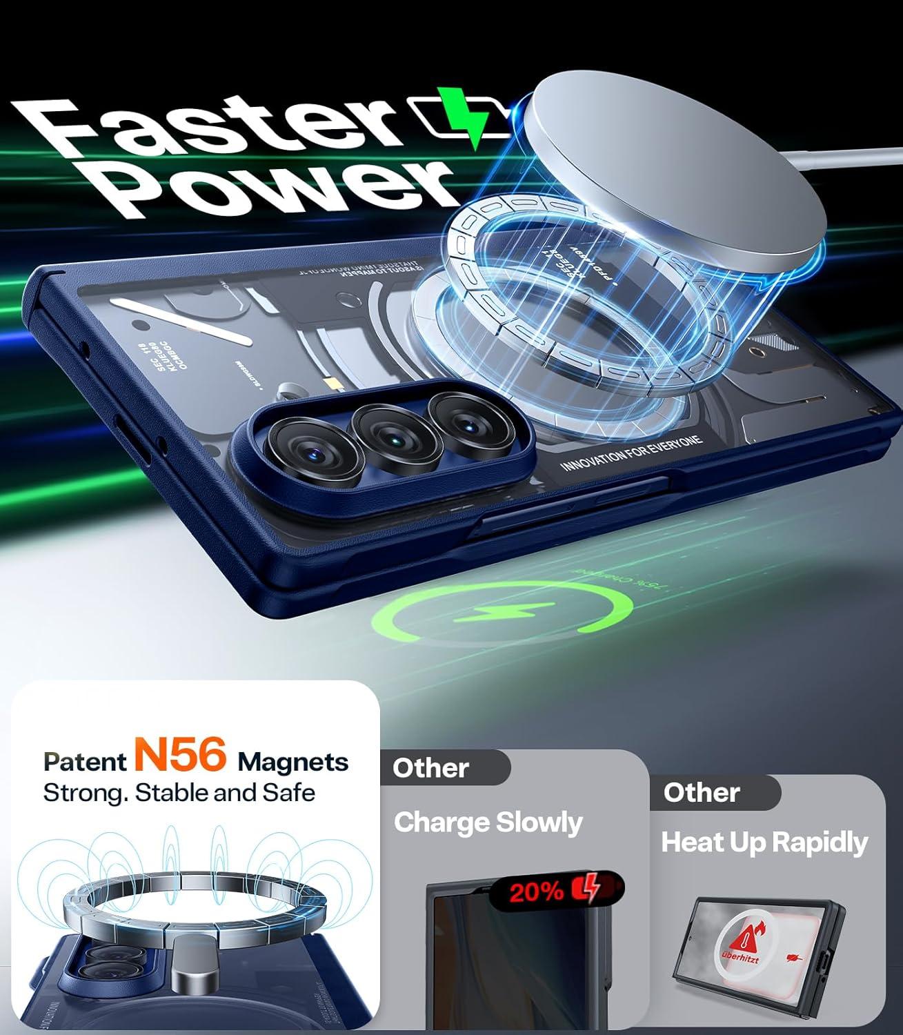 [Attaches Firmly and Charges Quickly] The most advanced N52SH Neodymium Magnets and patented MegaMag-boosted Technology offers strong 18N magnetic. Even if Z Fold 6 doesn't have magnetism, you also can enjoy using magnetic accessories with this innovative magnetic Z Fold 6 case! With Magnetic compatibility, this case outperforms all other cases, and your phone will work with all Magnetic accessories flawlessly!