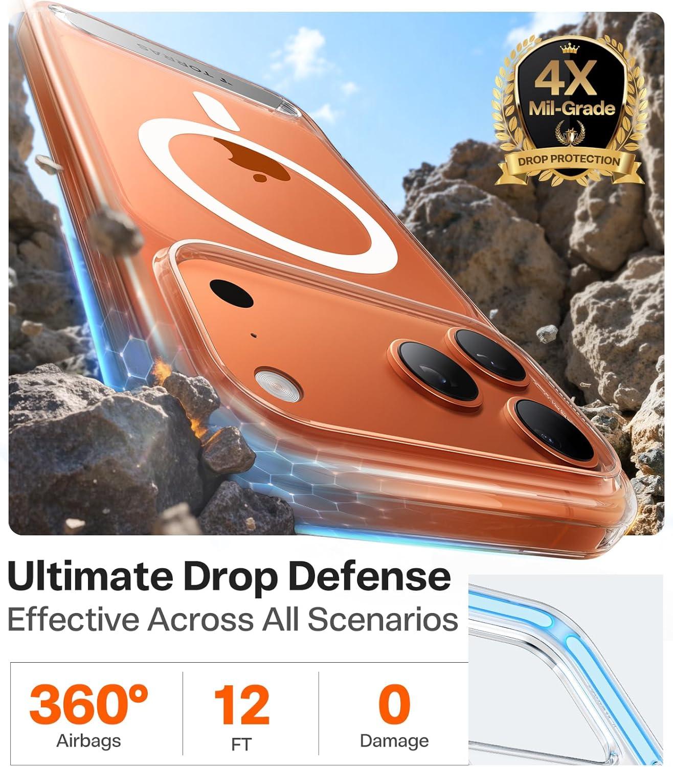 [Exlcusively Inside & Outside Double Shields] TORRAS takes the biggest jump in protection the industry has ever on the phone. For traditional outside, we remain 1.2mm raised screen lips and 0.8 mm lifted camera bezels. For the extra inside, TORRAS goes the extra mile to design 4 protective cushions incorporated into the inside corners and a 360° Air cushion inside of the camera bumpers. It protects your phone sufficiently from all drops, collisions, and shocks without any damage.